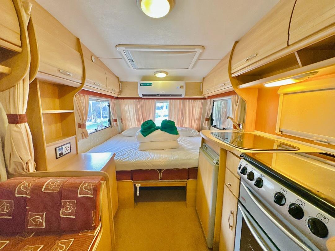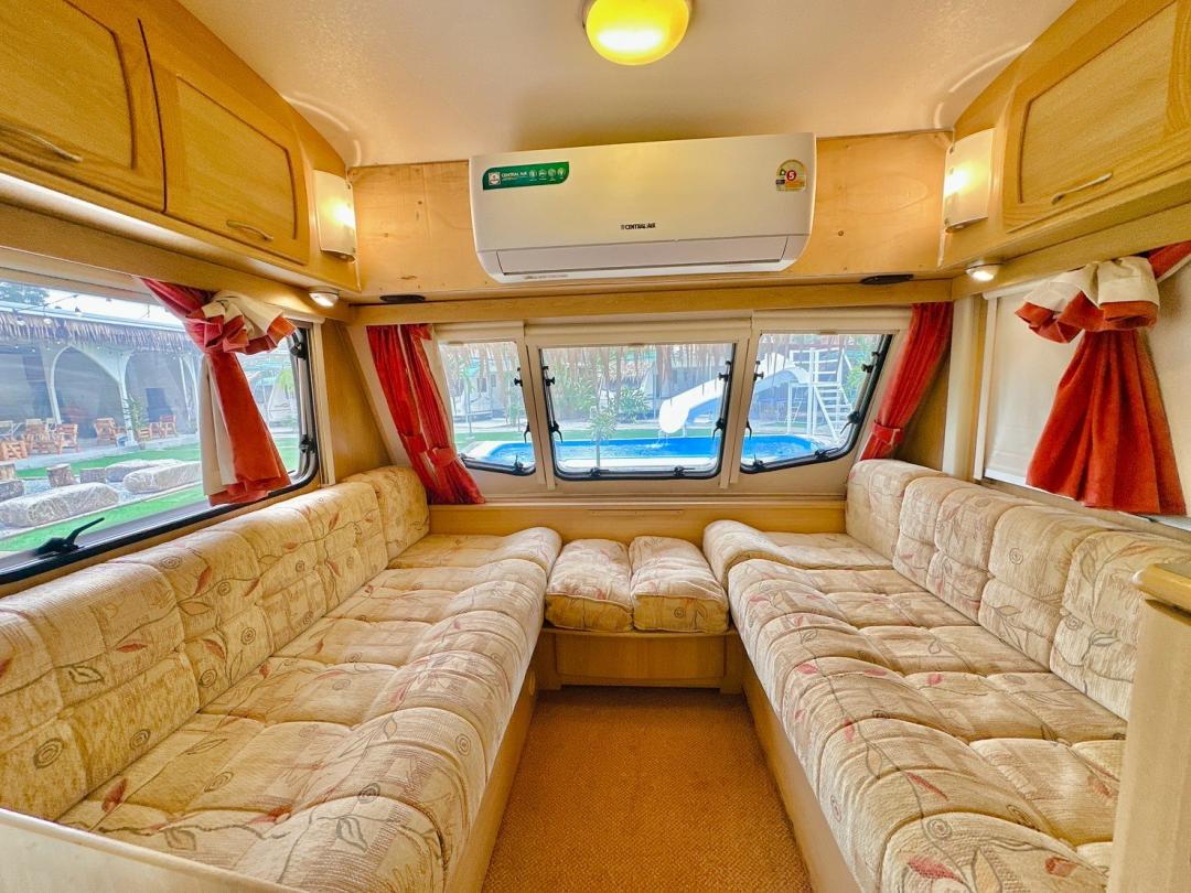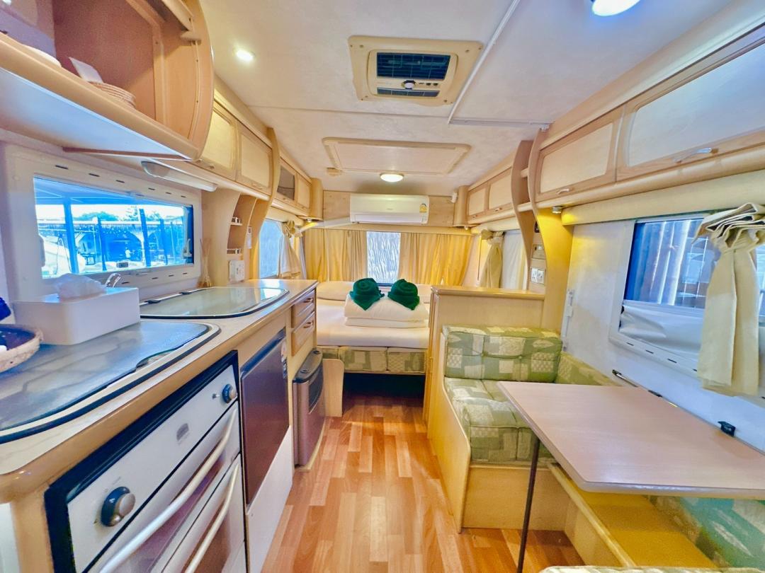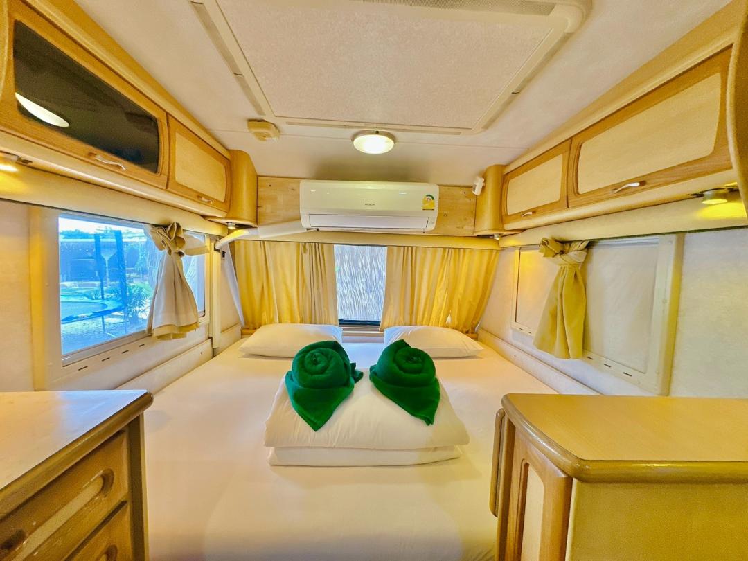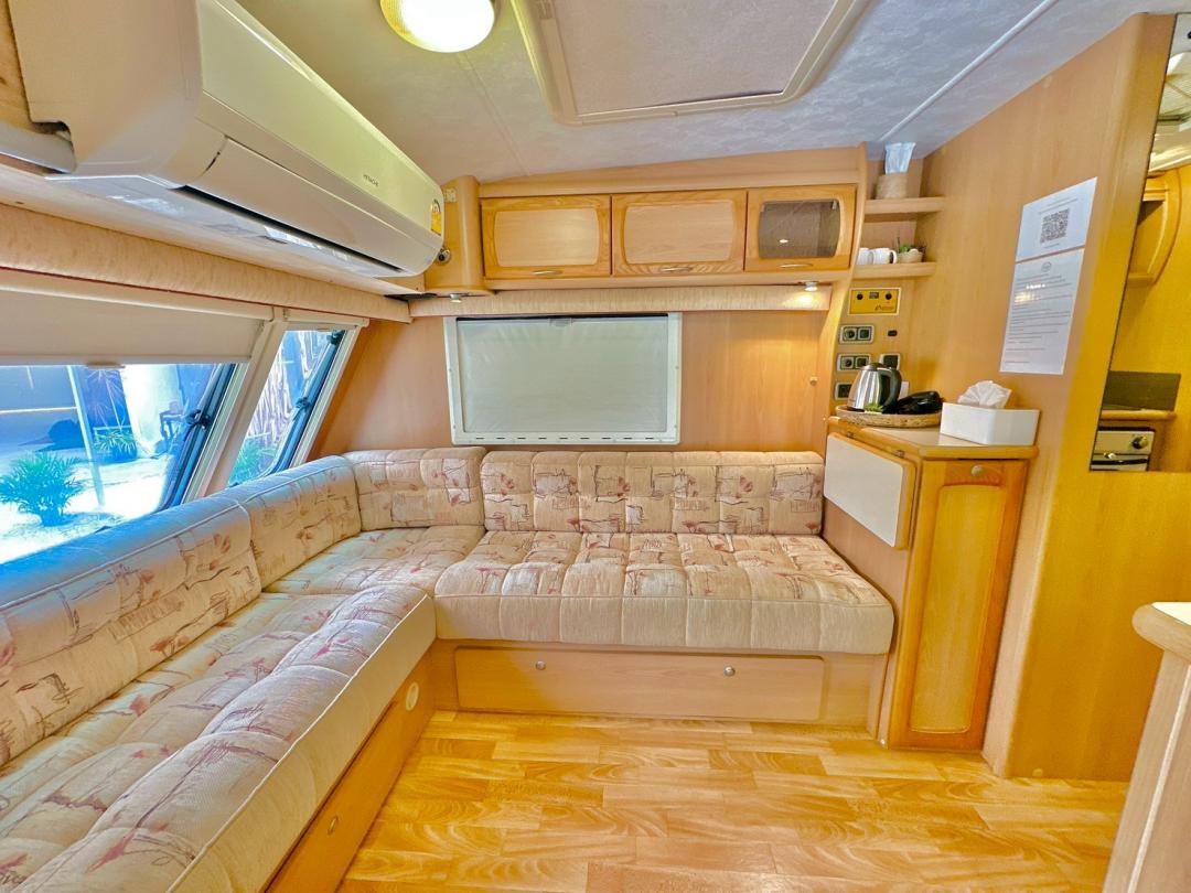- เบอร์ 24 เตียงขนาด 6 ฟุต 1 มีโต๊ะนั่งทานข้าว เตียงขนาด 4.5 ฟุต มีโซฟาตัวยู ห้องน้ำนอกตัวรถ