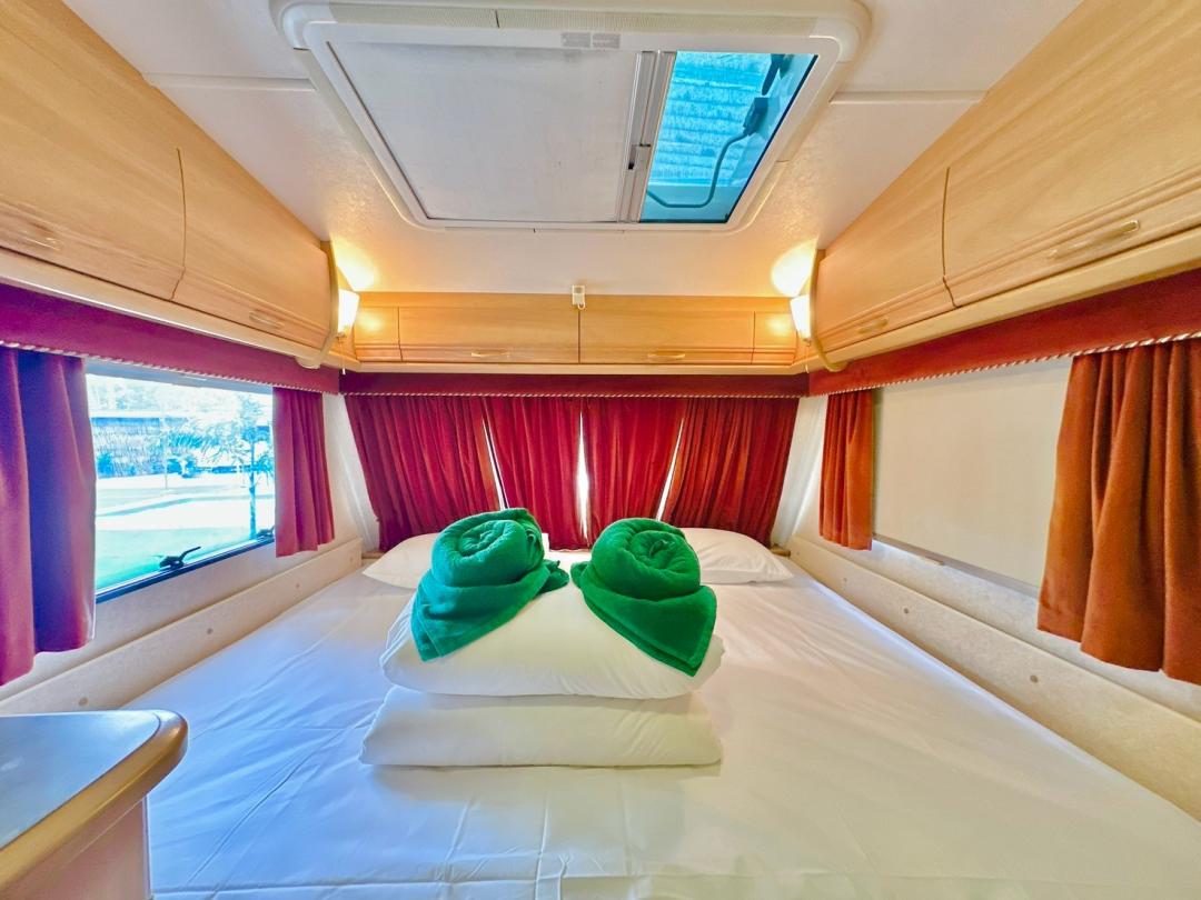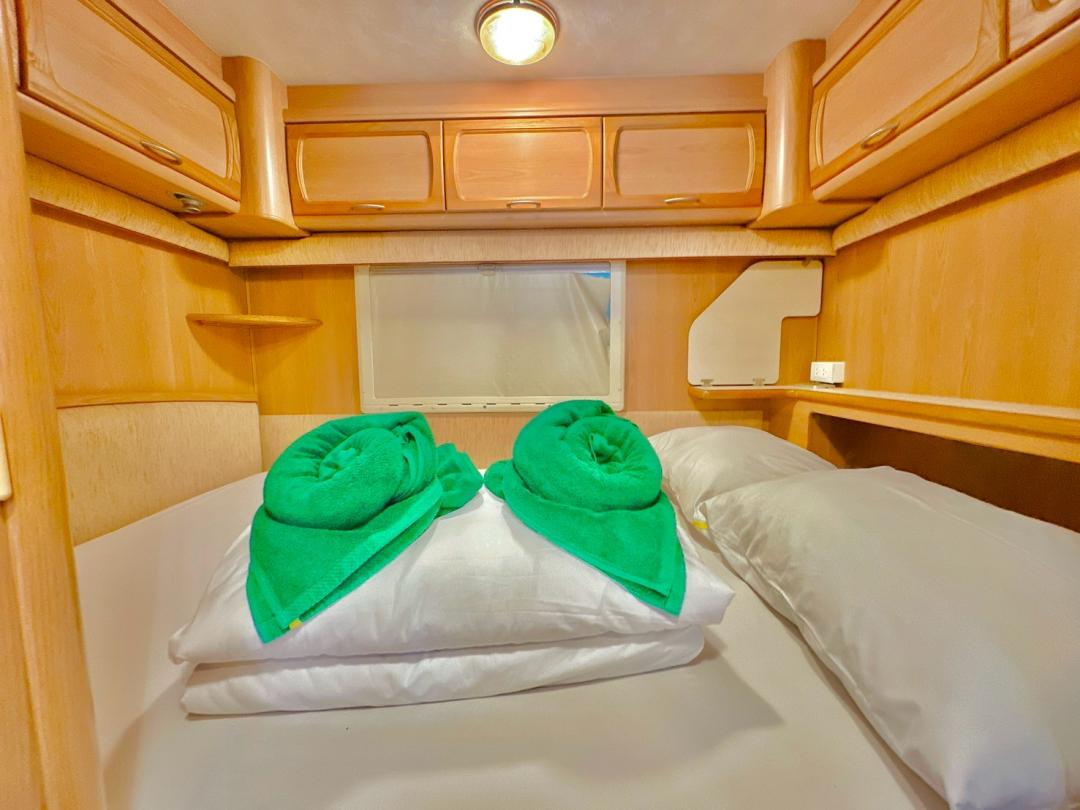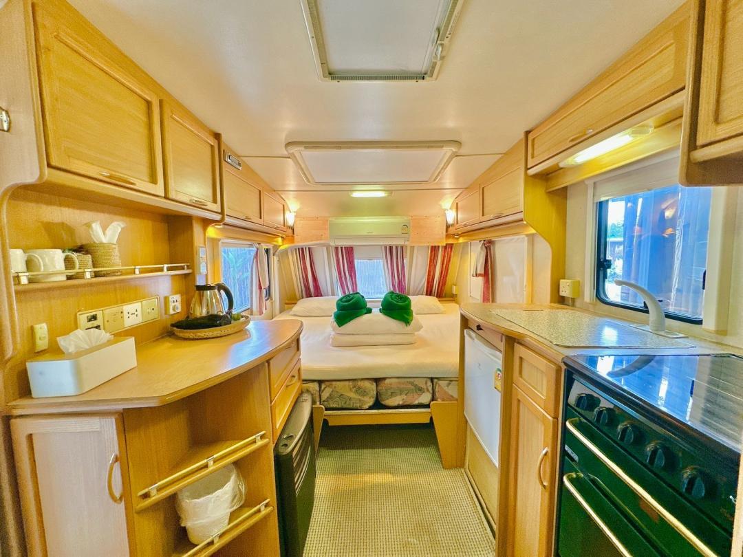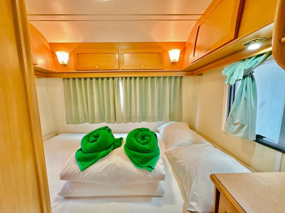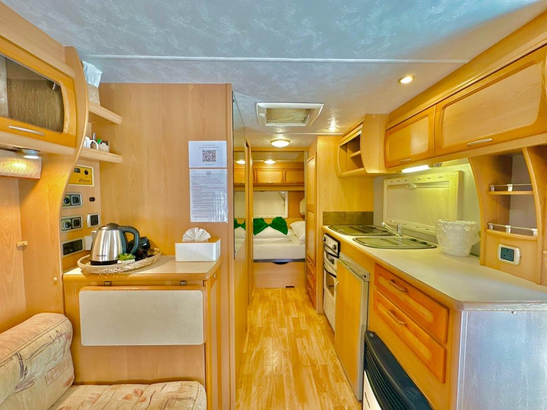 - เบอร์ 24 เตียงขนาด 6 ฟุต 1 มีโต๊ะนั่งทานข้าว เตียงขนาด 4.5 ฟุต มีโซฟาตัวยู ห้องน้ำนอกตัวรถ