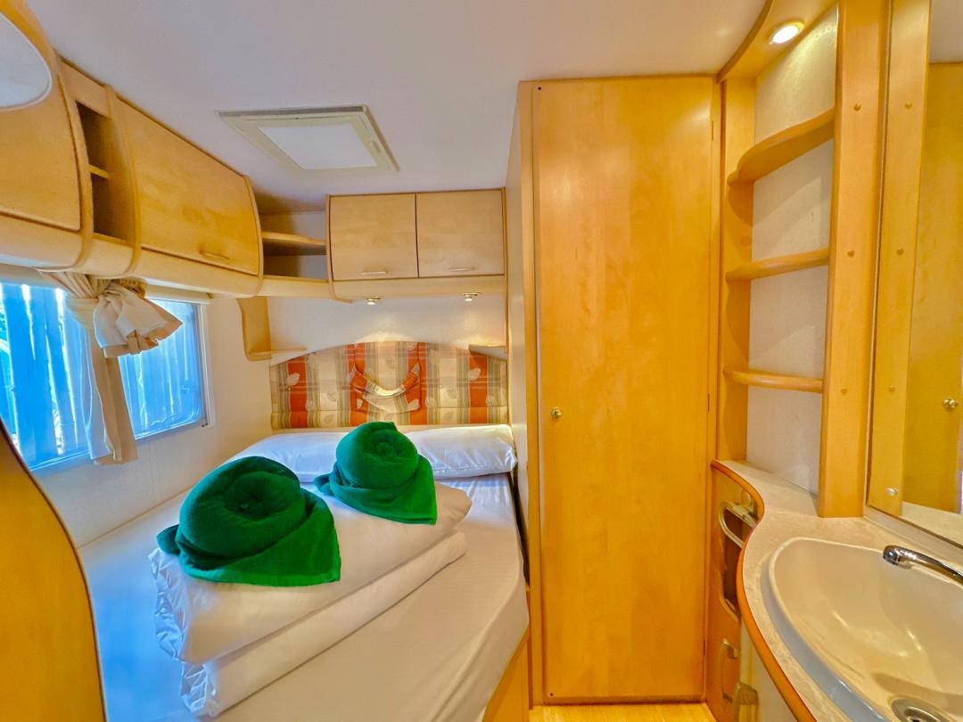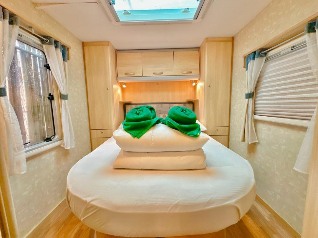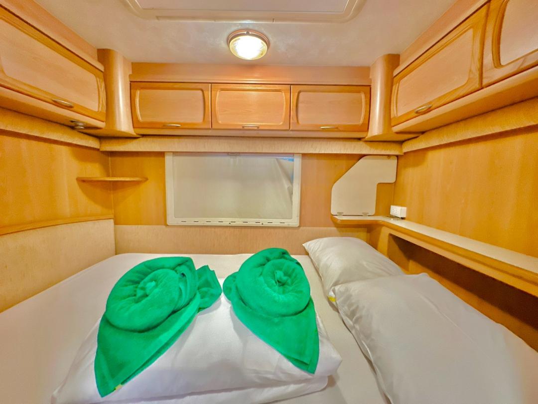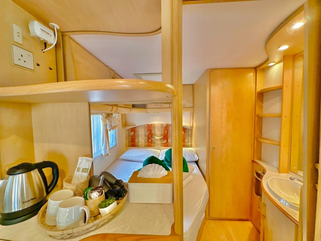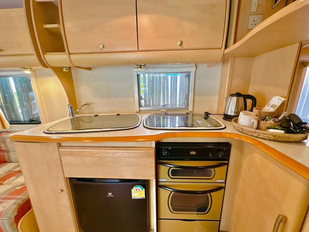 - เบอร์ 24 เตียงขนาด 6 ฟุต 1 มีโต๊ะนั่งทานข้าว เตียงขนาด 4.5 ฟุต มีโซฟาตัวยู ห้องน้ำนอกตัวรถ