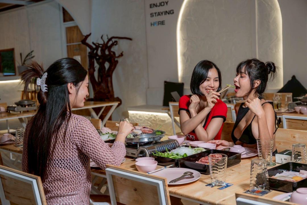 - เตาปิ้งย่าง หม้อ กระทะ จานชาม ช้อน แก้วน้ำ เขียง มีด ครก ถังน้ำแข็ง