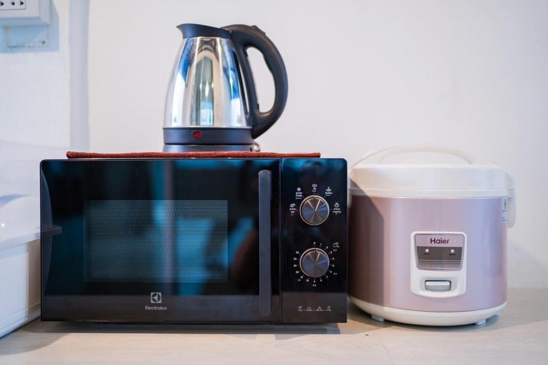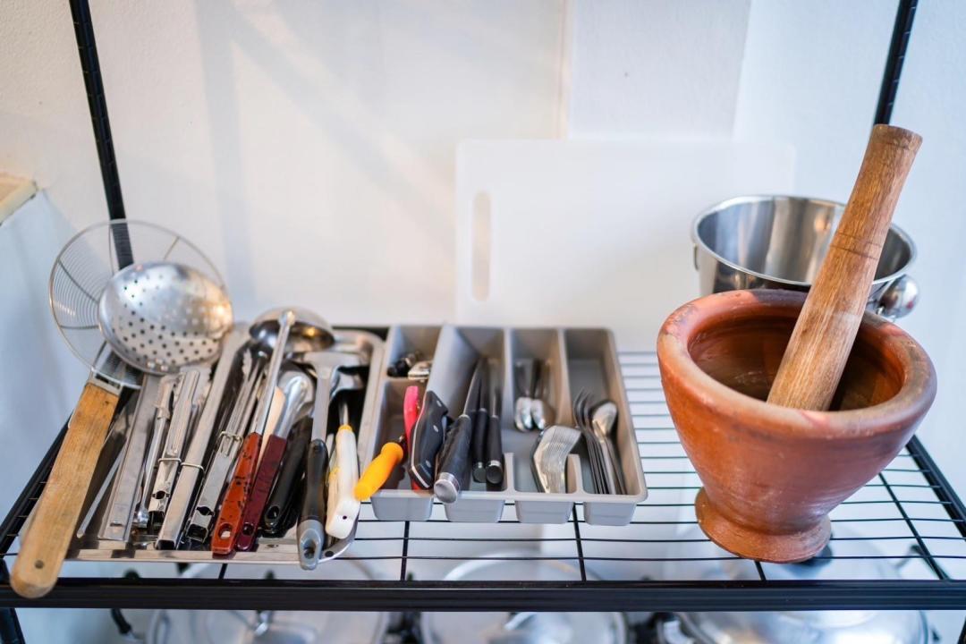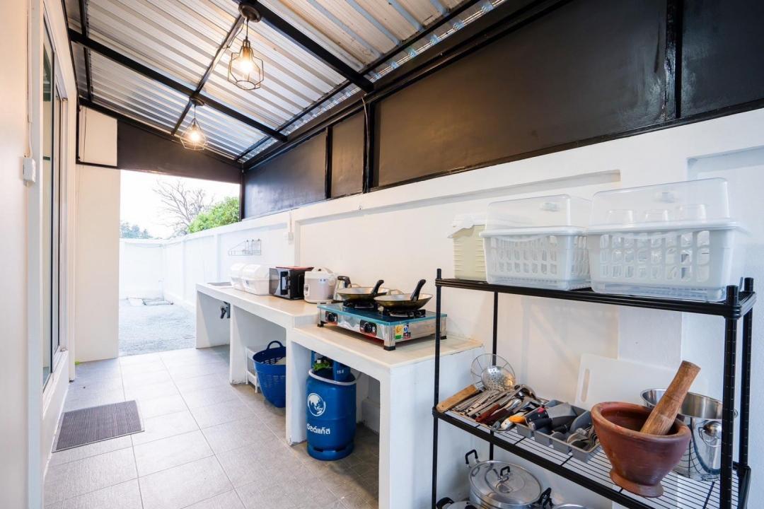• อุปกรณ์ครัวครบครัน ครก สาก เขียง มีด จาน ชาม ช้อน กะละมังล้างผัก เเก้วนำ้ดื่ม แก้วไวน์ เเก้วเบียร์ แก้วกาแฟ หม้อ กะทะ ตู้เย็น ถังแช่นำ้แข็ง ไมโครเวฟ กานำ้ร้อน หม้อหุงข้าว เตาแก๊ส เตาปิ้งย่าง ถังนํ้าแข็ง