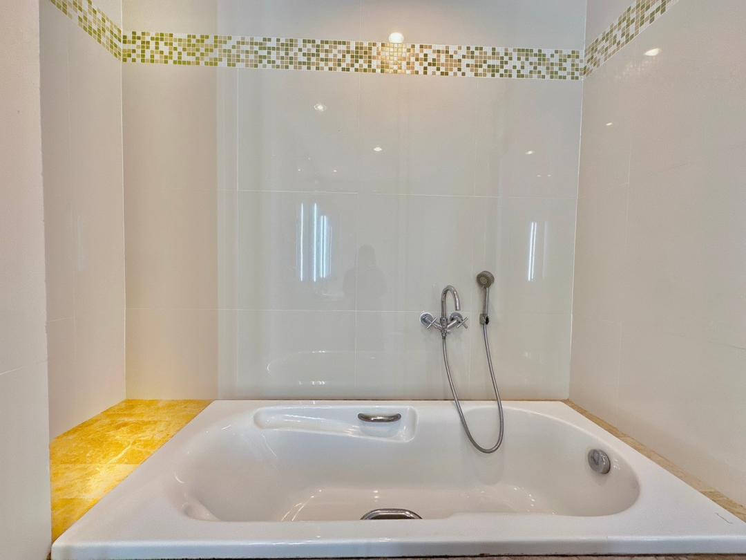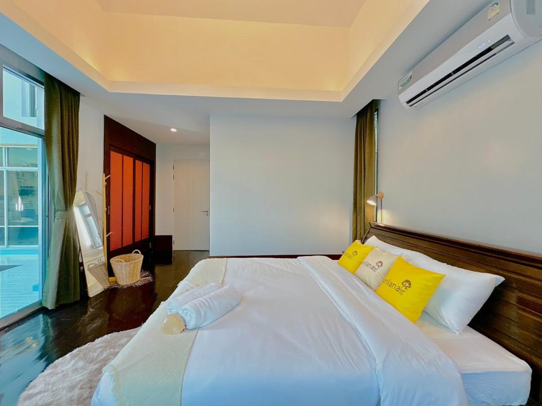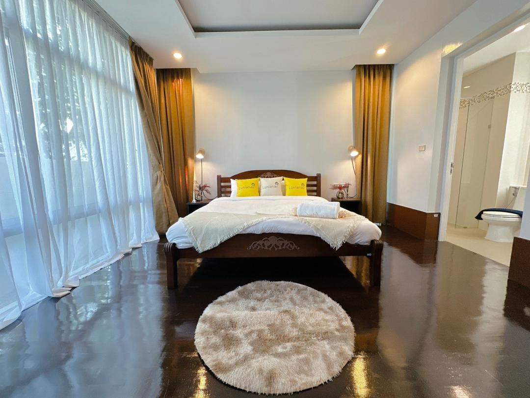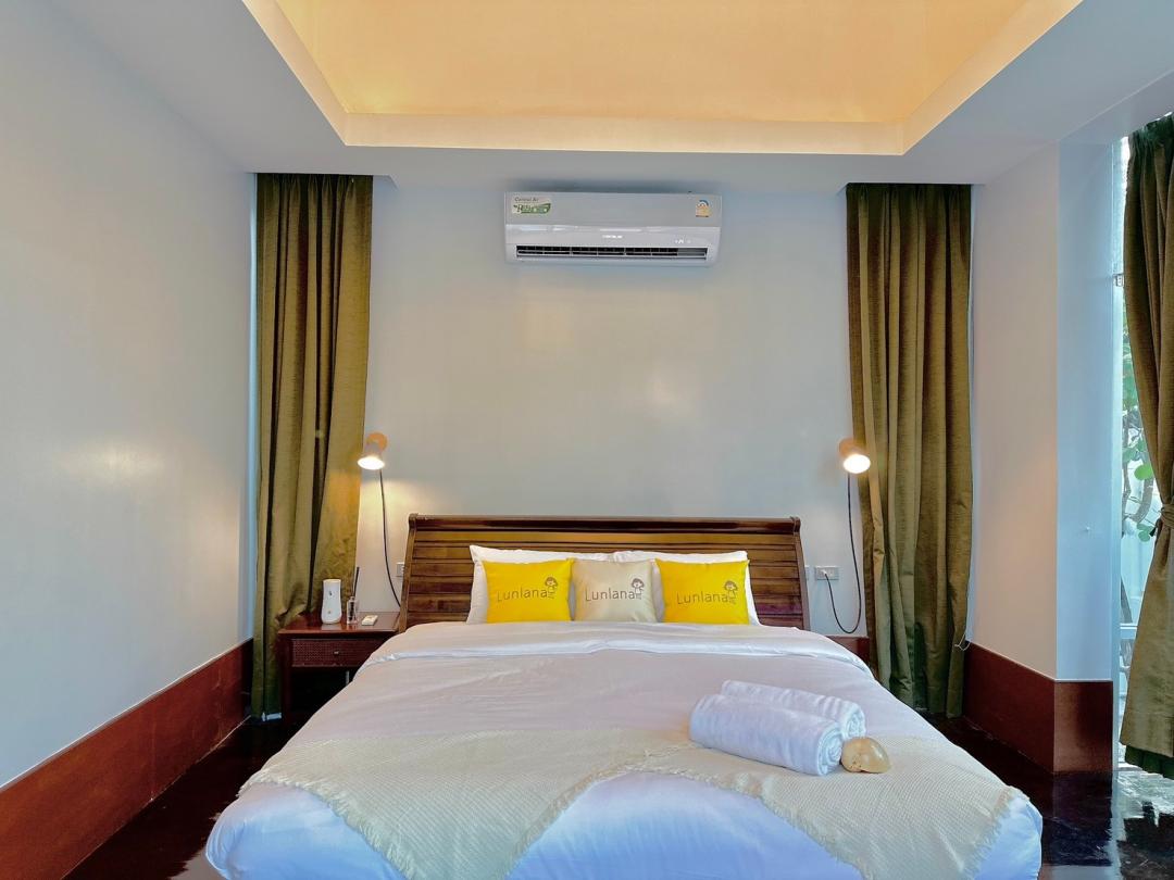 - ห้องนอนที่ 1 ชั้น 1 เตียง 6 ฟุต 1 เตียง (ห้องน้ำในตัว มีอ่างอาบน้ำ) ห้องริมสระ