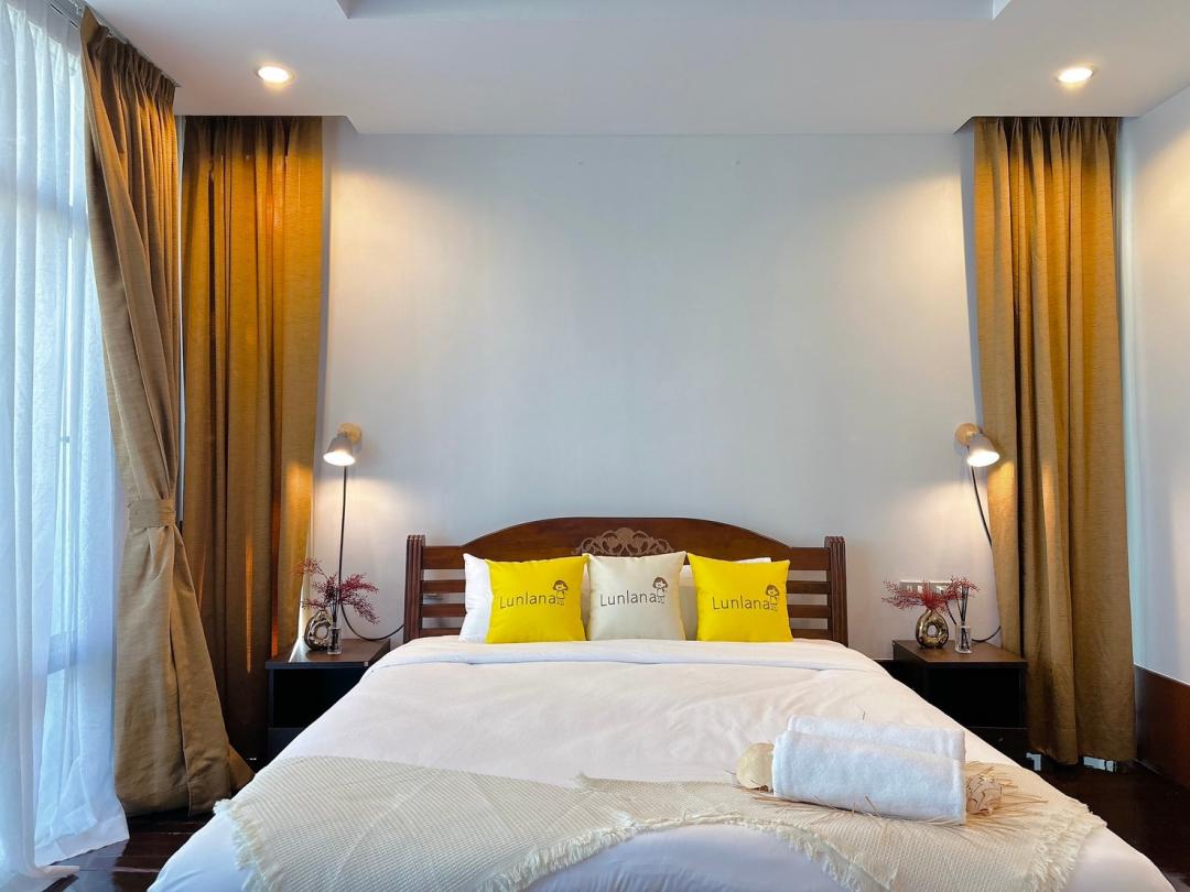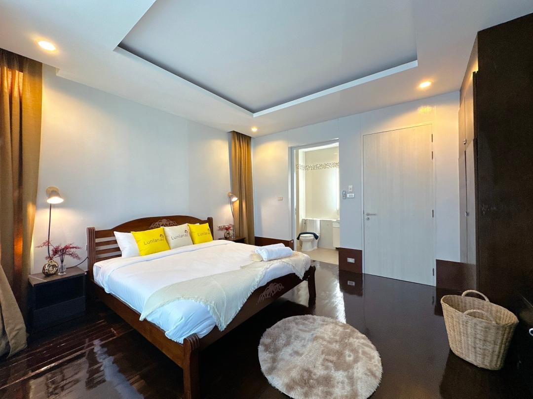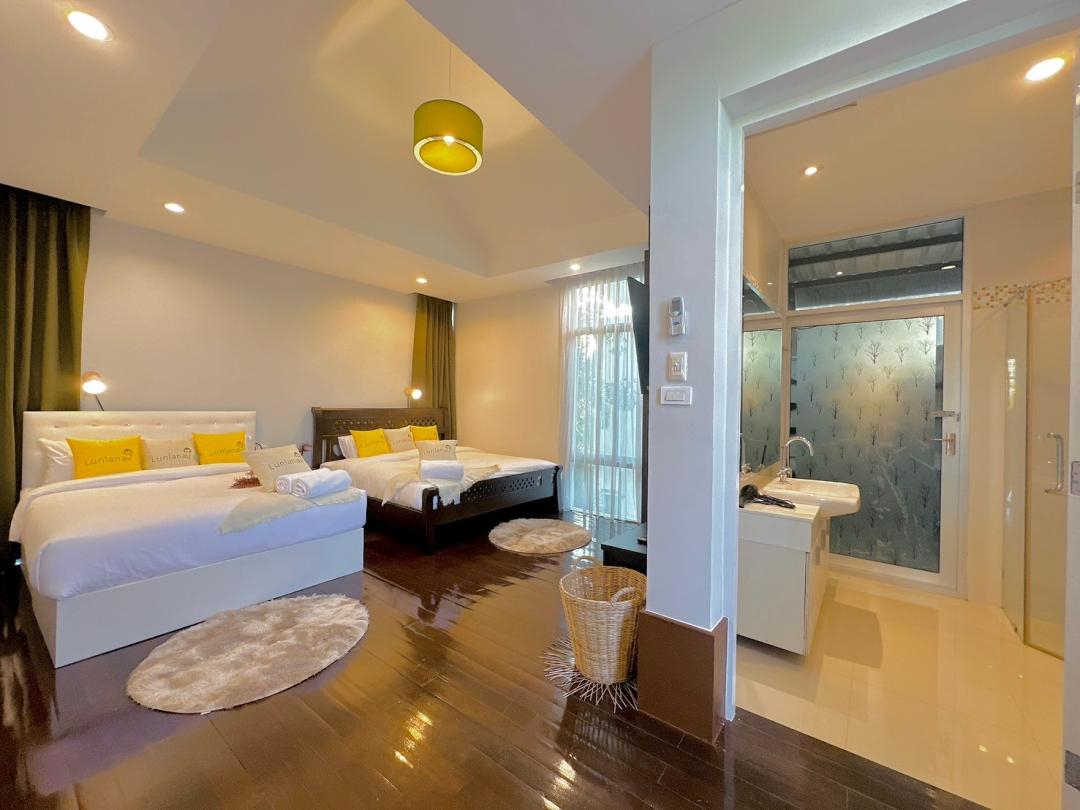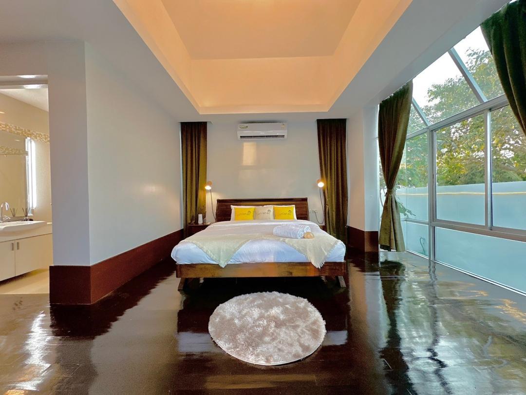 - ห้องนอนที่ 2 ชั้น 1 เตียง 6 ฟุต 1 เตียง (ห้องน้ำในตัว)