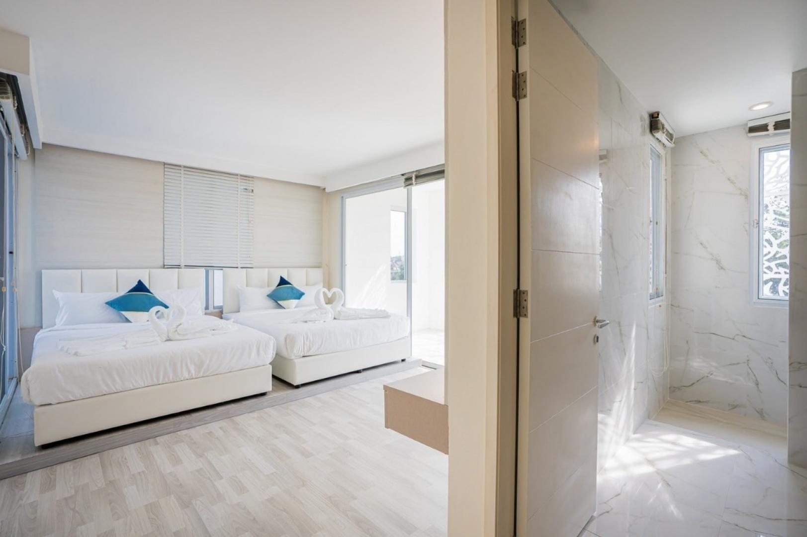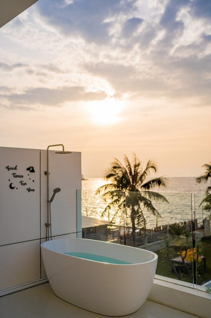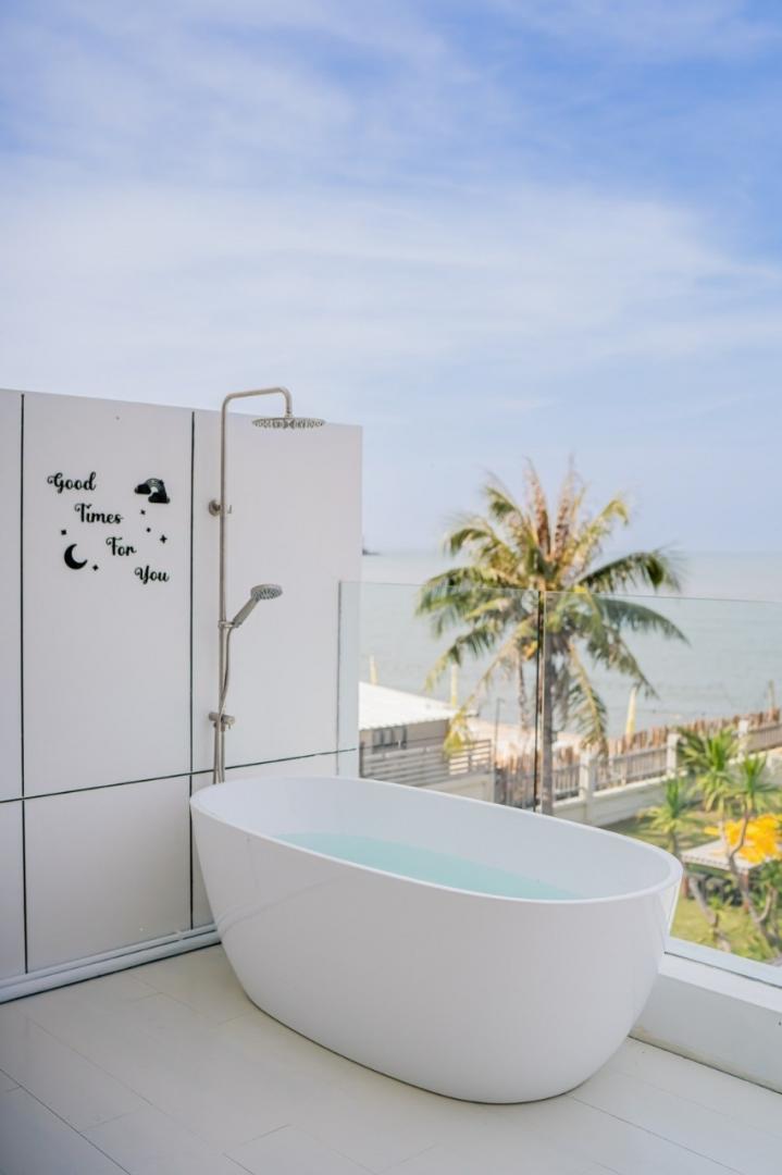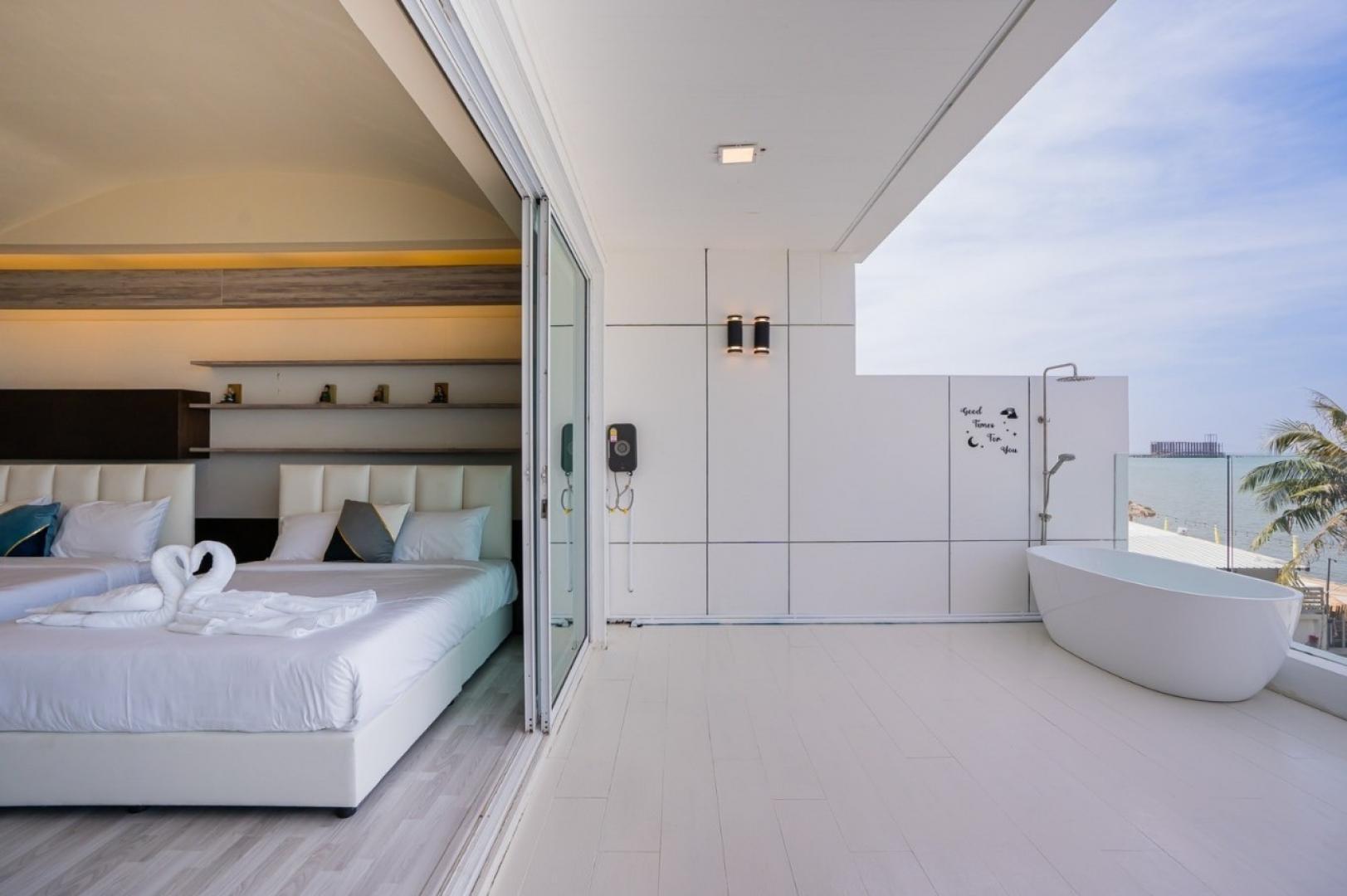 - ห้องที่ 2 เตียง 5 ฟุต 2 เตียง (วิวทะเล มีอ่างอาบน้ำที่ระเบียง)