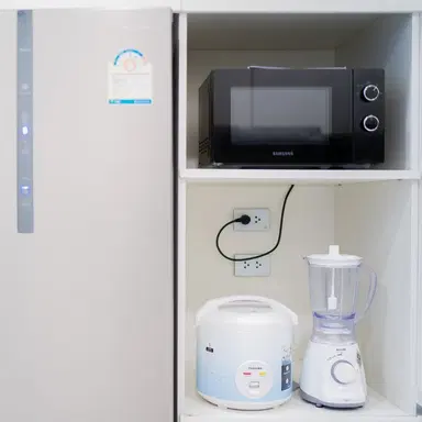 - อุปกรณ์ครัวครบครัน เตาไฟฟ้า / ไมโครเวฟ / กาน้ำร้อน เครื่องปรุงนำมาเอง