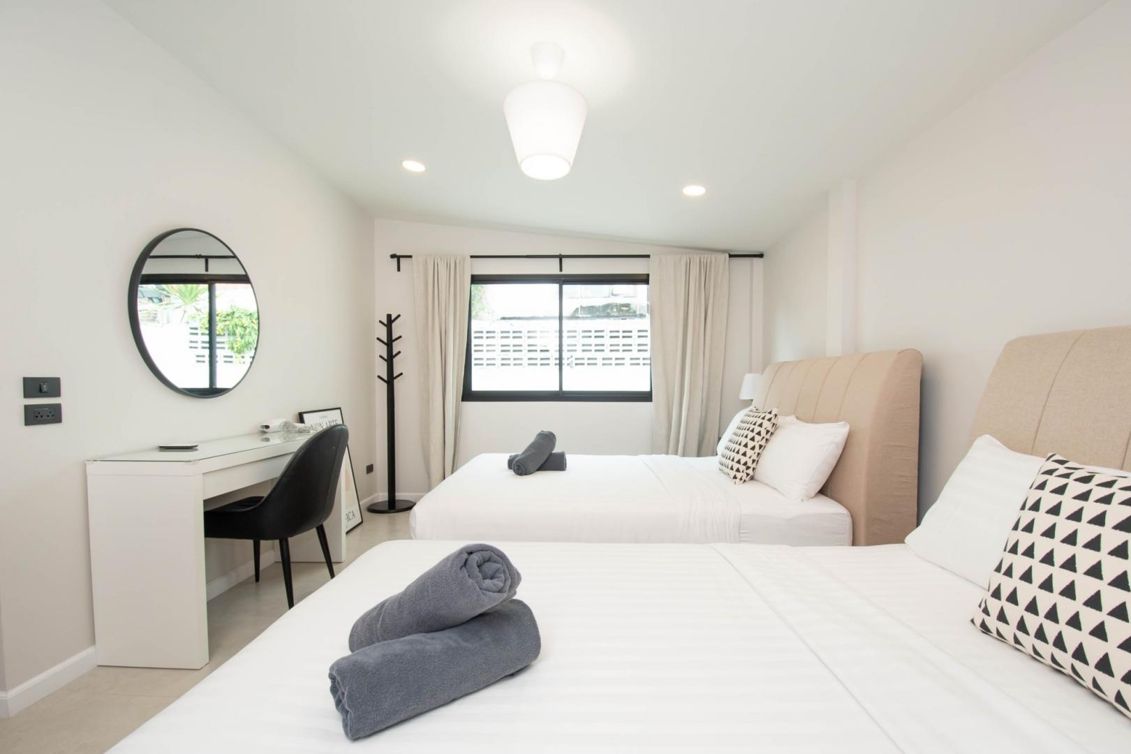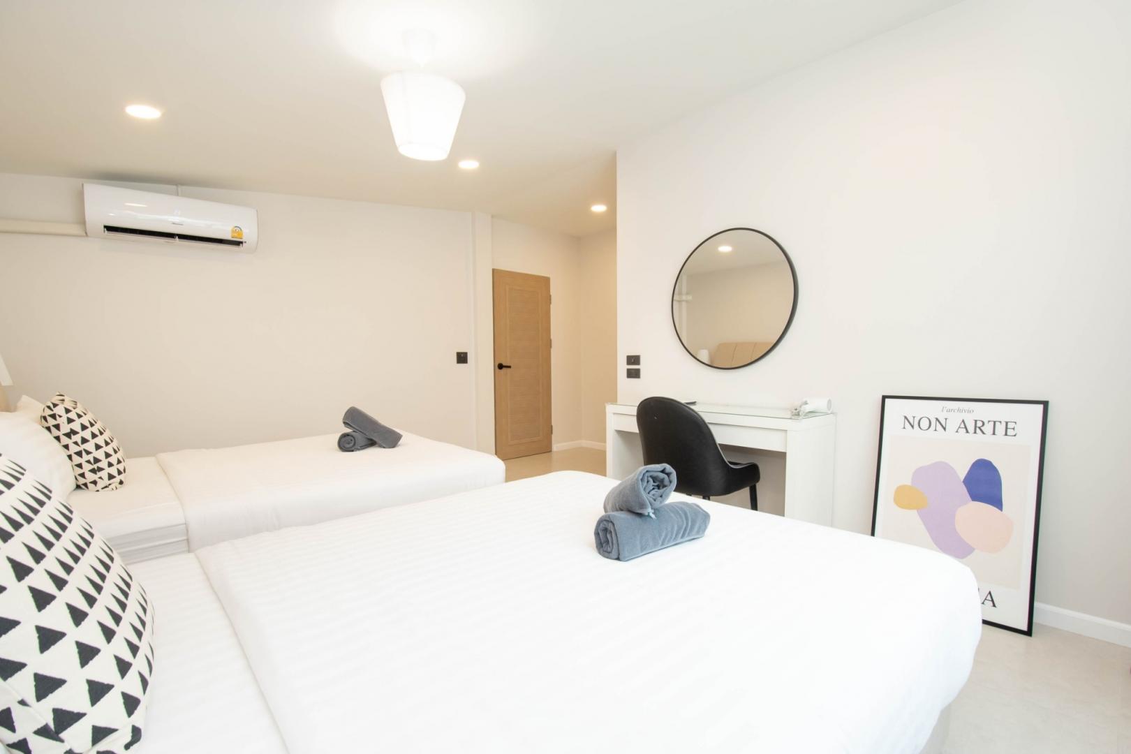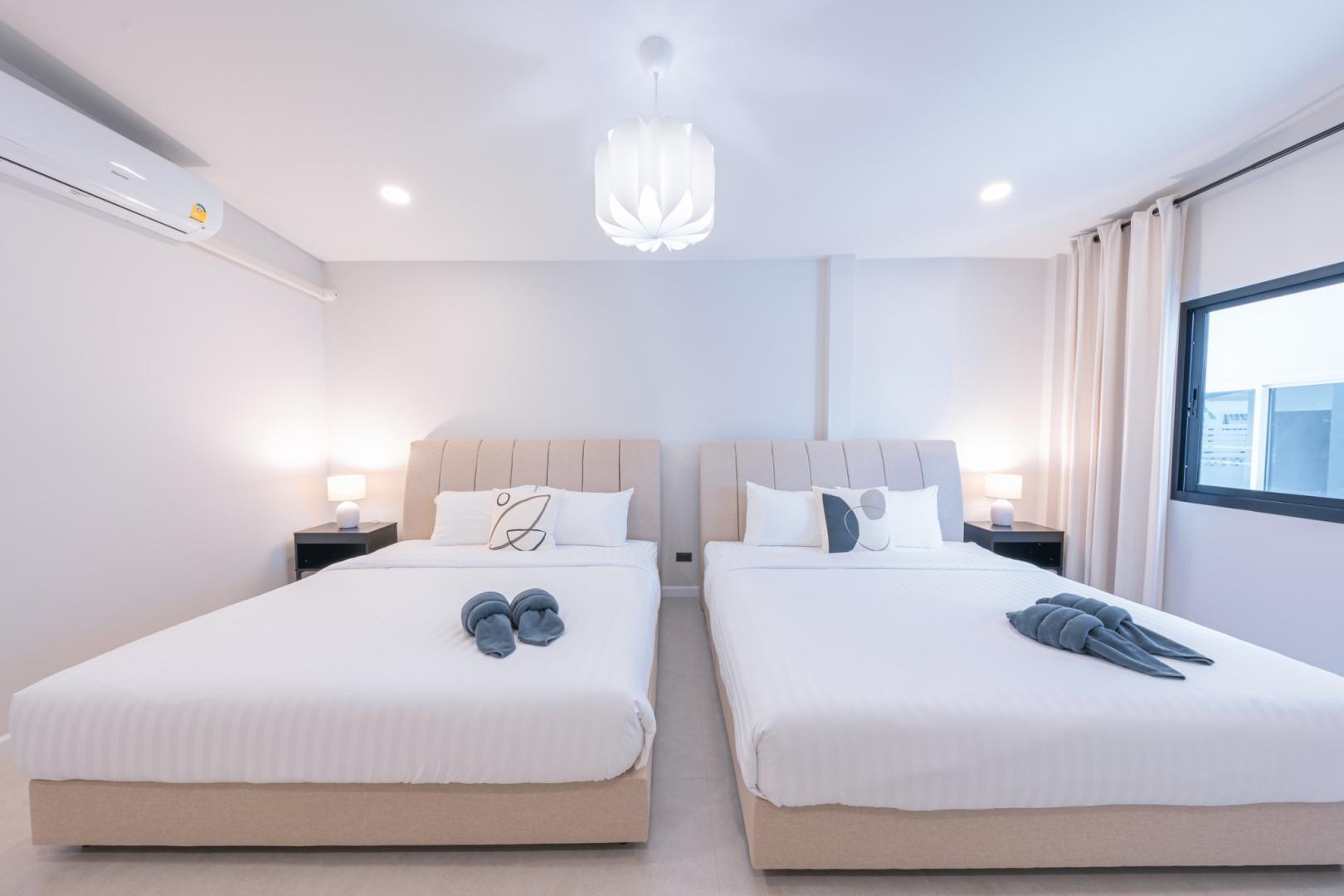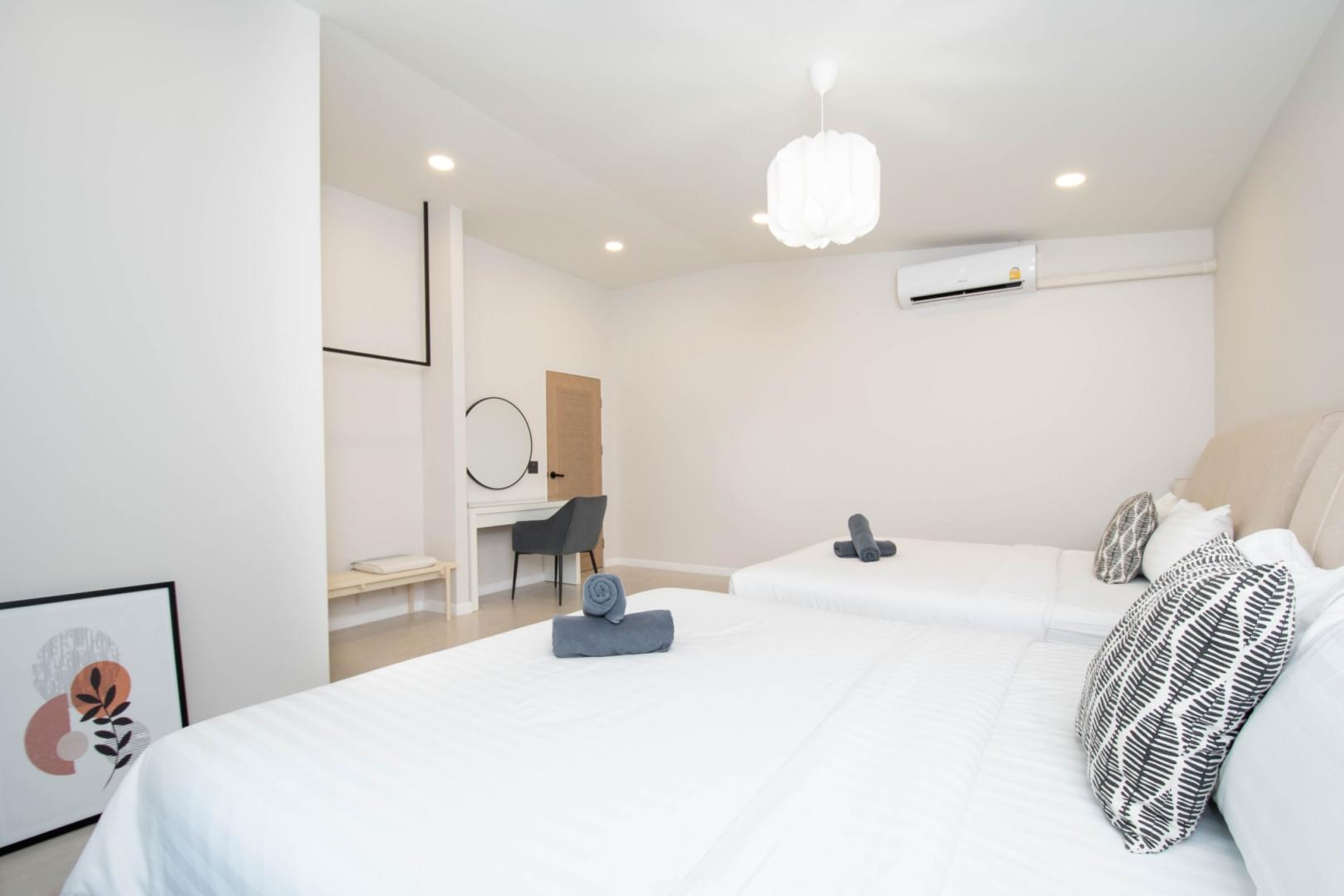 • ห้องนอนที่ 4: เตียง 5 ฟุต 2 เตียง (มีห้องน้ำในตัว)