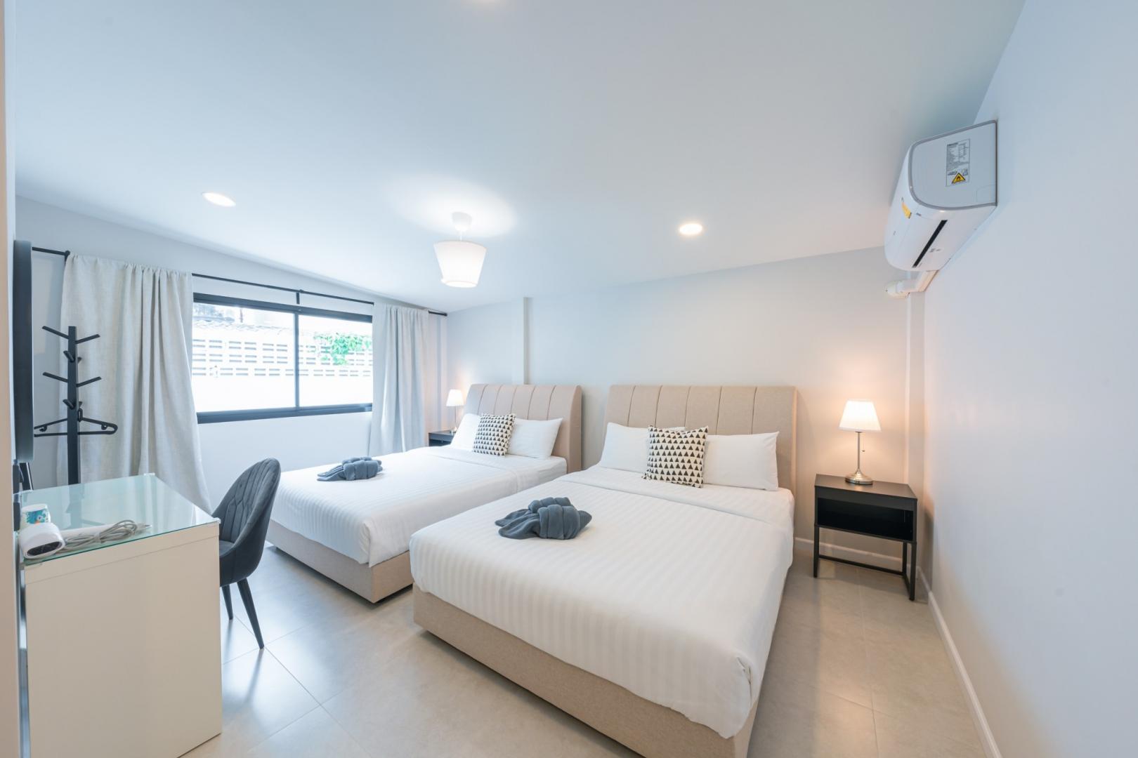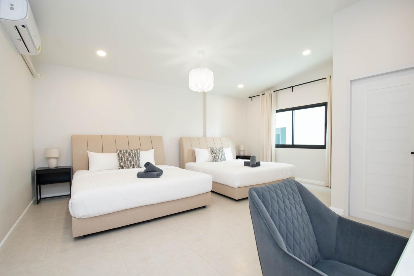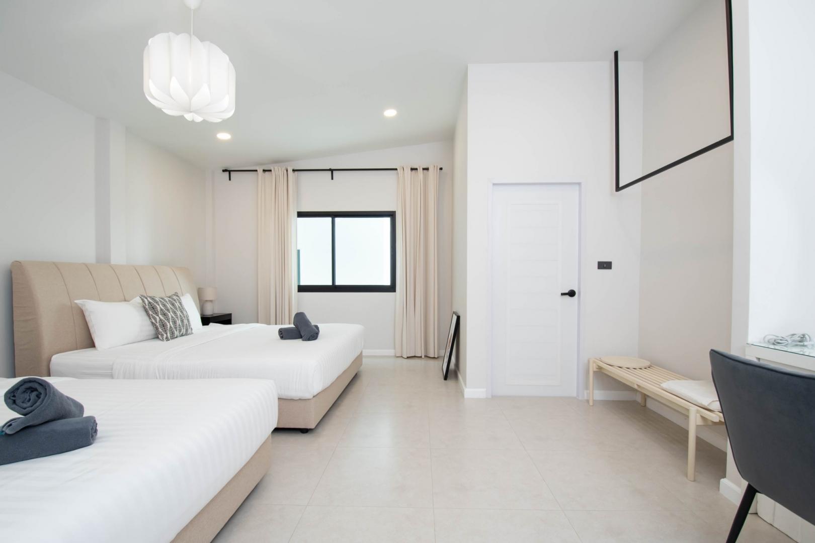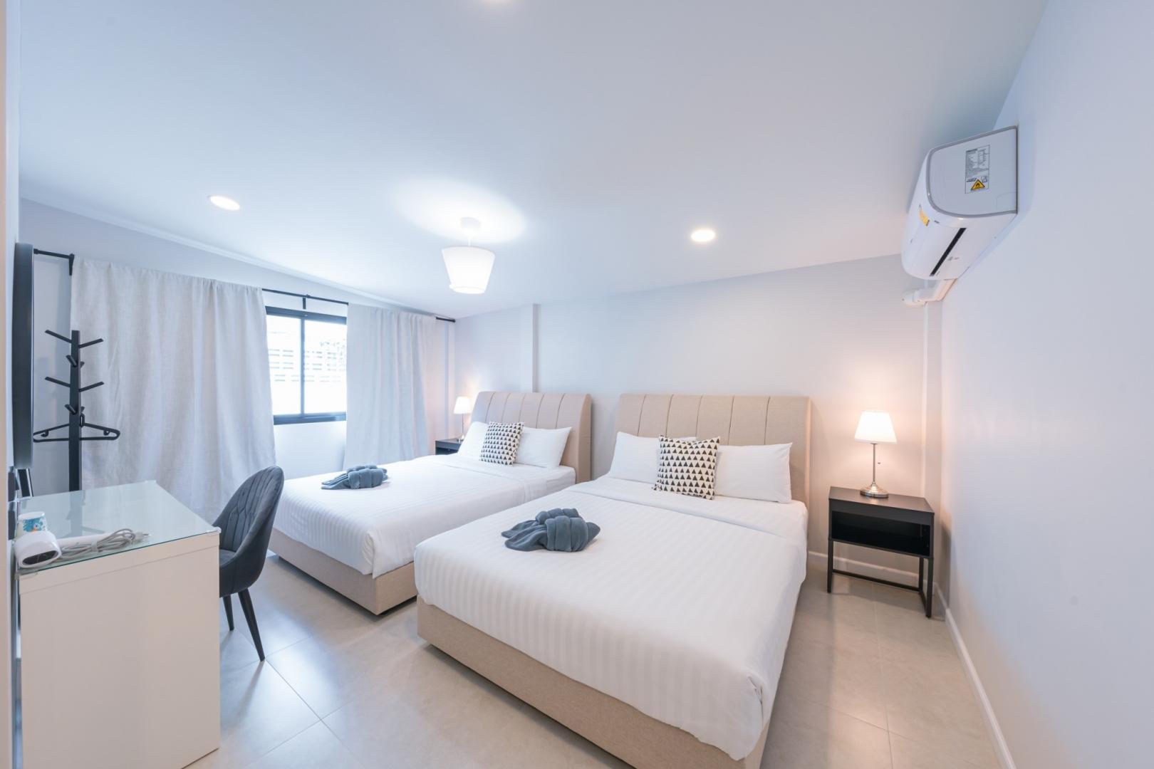 • ห้องนอนที่ 4: เตียง 5 ฟุต 2 เตียง (มีห้องน้ำในตัว)