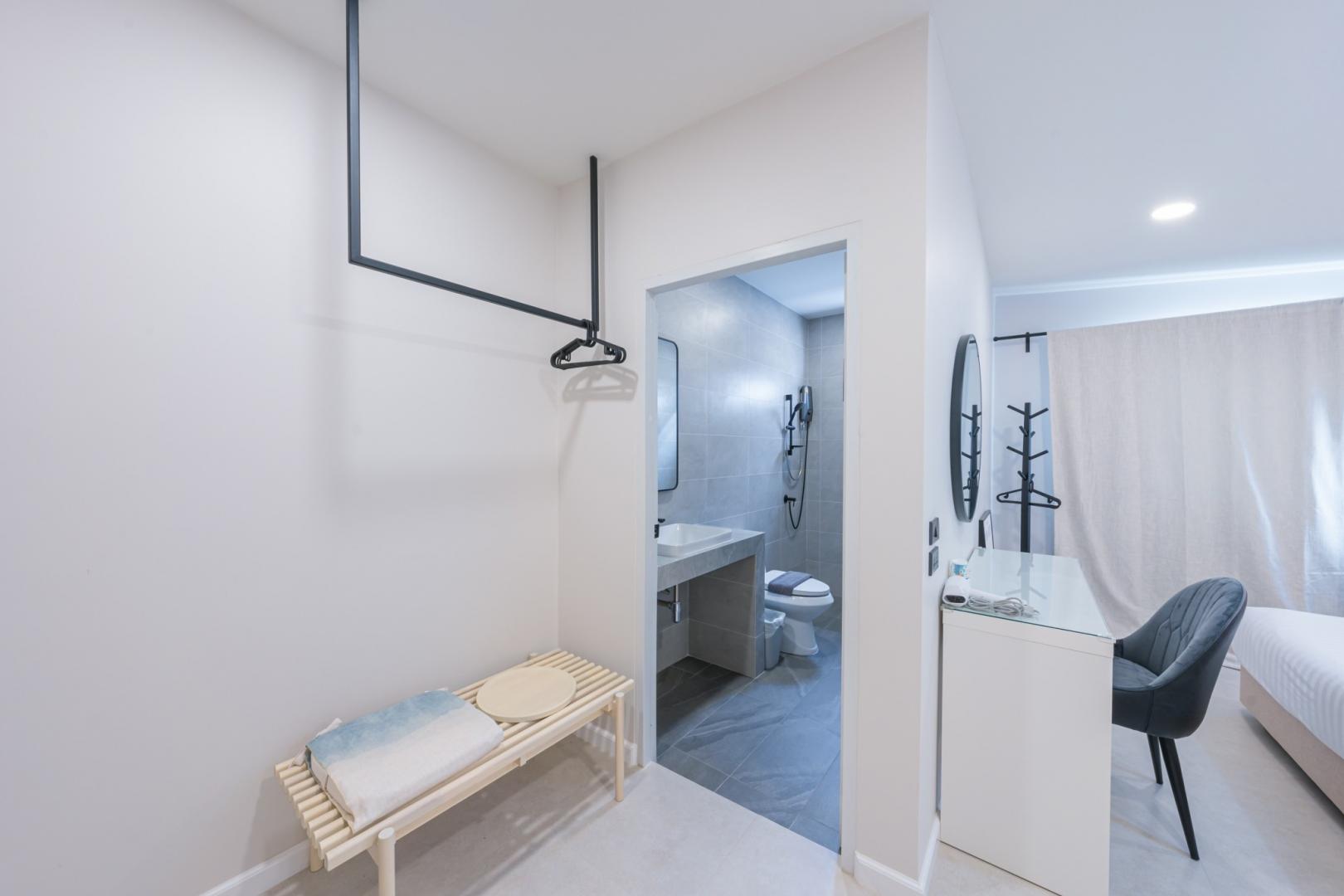 • ห้องนอนที่ 2: เตียง 6 ฟุต 1 เตียง (มีห้องน้ำในตัว)