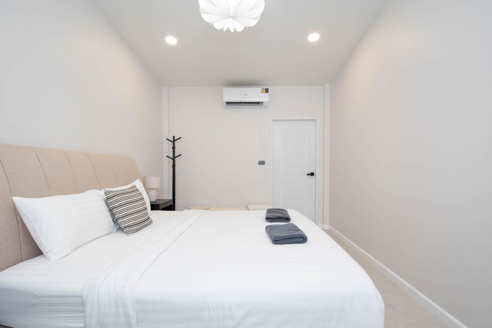 • ห้องนอนที่ 1: เตียง 6 ฟุต 1 เตียง (มีห้องน้ำในตัว)